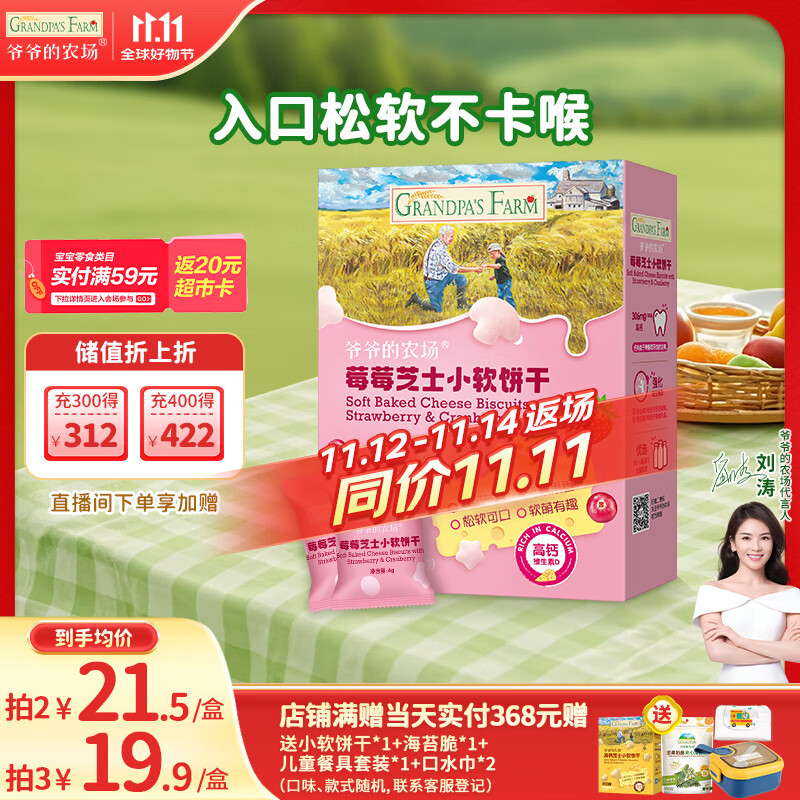 包邮 爷爷的农场芝士莓莓小软饼干 宝宝儿童零食澳洲干酪 出行便携60g